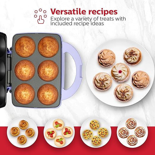 • Versatile Baking Options: More than just cupcakes! Create muffins, pizza cups, cinnamon buns, and more with this compact cupcake machine that makes 6 full-size treats at once.