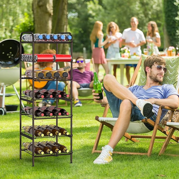• 【Large Capacity】Dimensions: 13.4 × 13 × 43 inches. This 7 tier beverage water bottle rack can hold up to 10 mineral water bottles each tier; and easily store up to 70 food cans, which will save extra space for your kitchen, pantry, keep your home tidy and clean.
