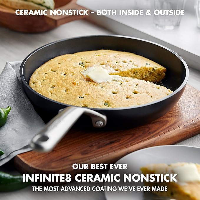 • Infinite8: The most state-of-the-art ceramic nonstick GreenPan has ever created, an ultra-durable coating with layers of diamonds for cutting-edge performance and durability, metal utensil safe
