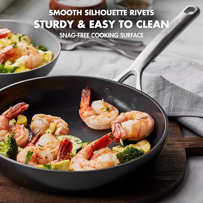 • TOXIN-FREE: This collection’s healthy ceramic nonstick coating is free of PFAS, PFOA, lead, and cadmium.