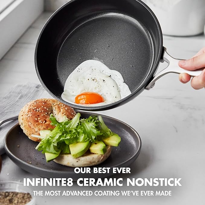 • CUTTING-EDGE CERAMIC NONSTICK: Infinite8, the most state-of-the-art ceramic nonstick GreenPan has ever created, an ultra-durable coating with layers of diamonds for cutting-edge performance and durability, metal utensil safe.