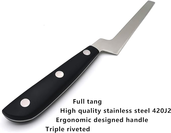 • Premium Quality: Full-tang, 420J2 stainless steel, shinly polished. Long lasting edge retention, does not require frequent sharpening. Dishwahser safe.