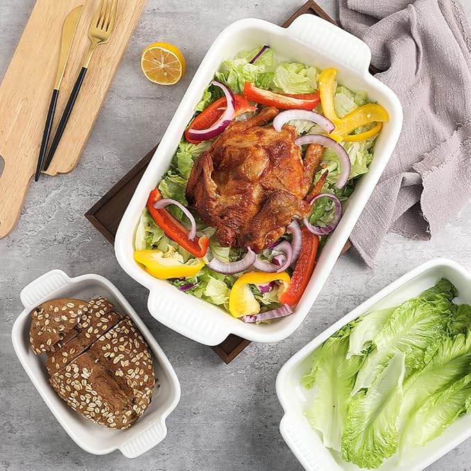• Meet Your Daily Needs - Rectangular baking dish set serve for pizza, bread, pasta, lasagna, chicken, roast, beef, vegetables, food heating and storage, meet your different needs.