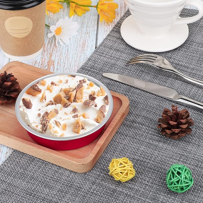 Beasea Disposable Mini Pie Tins with Lids, 50 Pack 4” 8oz Bright Red Aluminum Baking Foil Tins Small Round Tart Container for Individual Dessert Cupcake Muffin Cheesecake Ramekin Quiche Oven Dishes