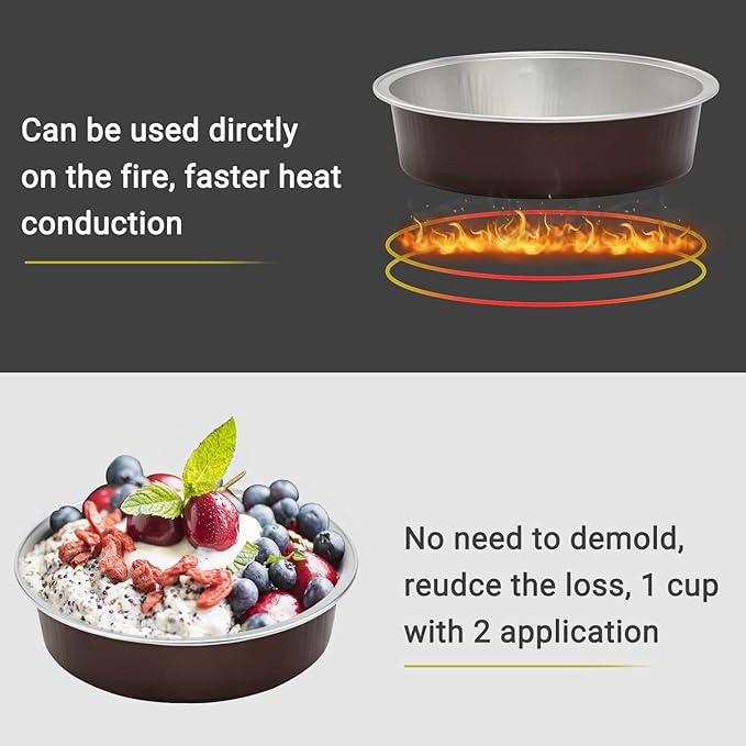 • 【Convenient Use】With the good quality aluminum foil material, you can directly put the pie pan on the fire to use (Do not put the empty pan on the fire), faster heat conduction and reduce the use of electricity.