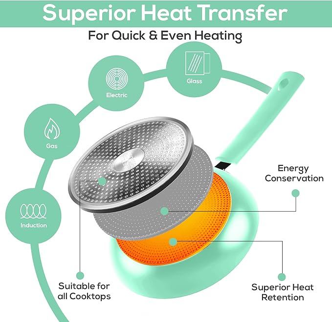 • HARBORING A CULINARY HAVEN – Explore new recipes and savor the delectable aroma, with the impeccably fabricated, nonstick even-heat distributed frying pans, ideal for all types of cook-tops, be it electric or ceramic.
