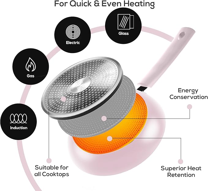• HARBORING A CULINARY HAVEN – Explore new recipes and savor the delectable aroma, with the impeccably fabricated, nonstick even-heat distributed frying pans, ideal for all types of cook-tops, be it electric or ceramic.