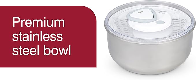 Zyliss Easy Spin 2 Stainless Steel Salad Spinner - Lettuce & Vegetable Spinner - Works as a Large Serving Bowl - Stainless Steel & BPA-Free Kitchen Essential - Silver