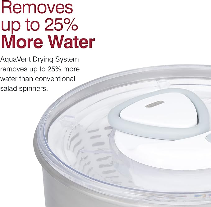 • Reliable & Stackable Salad Prep Bowl: This large vegetable spinner dries 4-6 portions of salad or vegetables within seconds; our patented AquaVent technology removes 20% mor water with its fast, efficient water extrusion