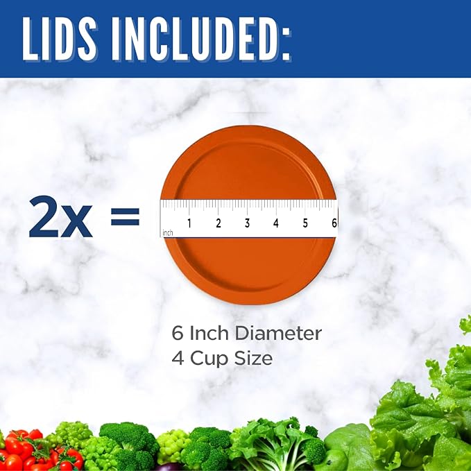 Replacement Lids for Pyrex 4-Cup Glass Food Storage Container Bowls, 6-Inch Plastic Round Lids Covers fits Pyrex 7201-PC, Airtight & Leakproof (2-Pack, Orange)