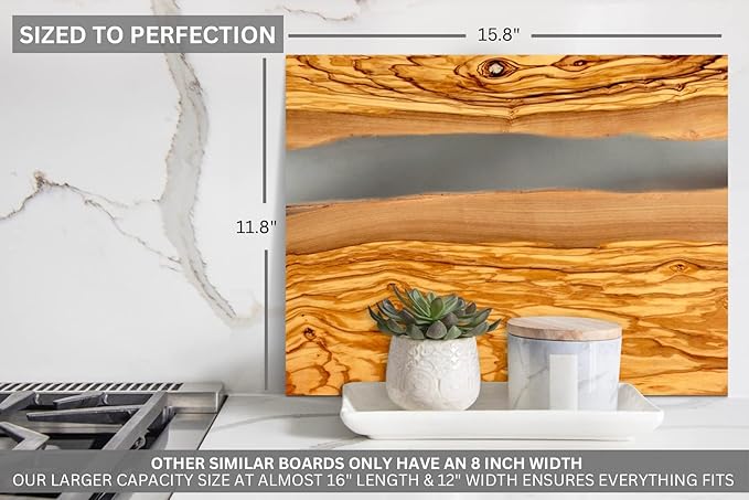 - 🪵 Only the Finest Materials: What gives this decorative cheeseboard its distinctive charm? It's made of genuine Italian olive wood, famous for rock-hard strength, richly patterned grain, and gorgeous golden hues; Plus, it's adorned with unique resin artwork depicting a beautiful river; Choose from 4 resin colors: Black, Blue, Gray, and White Pearl