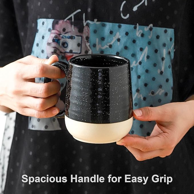 Hasense Coffee Mugs Set of 4, 15 Ounce Ceramic Coffee Cups with Handles, Porcelain Large Latte Mug for Coffee Cappuccino Tea, Black Mugs for Men, Women Christmas Holiday Gift
