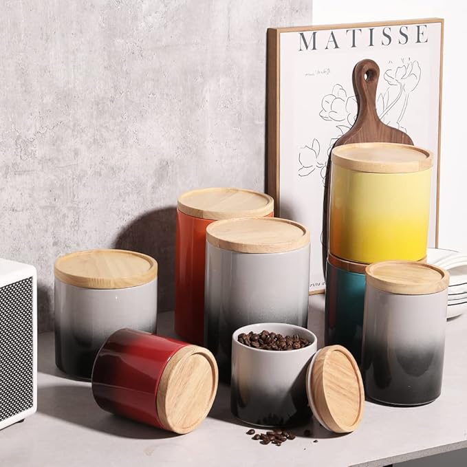 Sweejar Ceramic Food Storage Jar, Stackable Kitchen Canisters, Containers with Airtight Seal Wooden Lid for Serving Ground Coffee, Tea, Sugar, Salt and More - 28 Fl Oz (Gradient Gray)