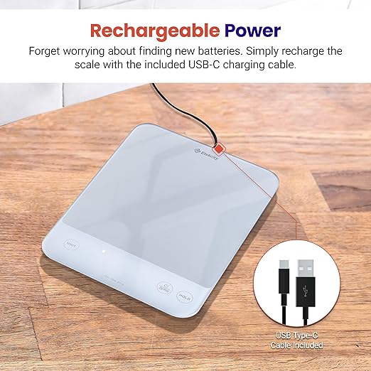 • ๐—ฅ๐—ฒ๐—ฐ๐—ต๐—ฎ๐—ฟ๐—ด๐—ฒ๐—ฎ๐—ฏ๐—น๐—ฒ ๐—•๐—ฎ๐˜๐˜๐—ฒ๐—ฟ๐˜†: The scale also features a 300mAh rechargeable battery and comes with a USB-C charging cable