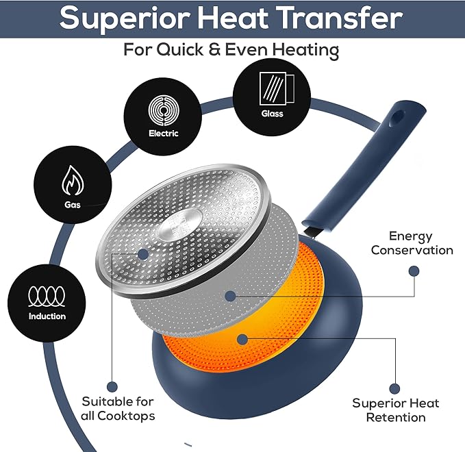 • HARBORING A CULINARY HAVEN – Explore new recipes and savor the delectable aroma, with the impeccably fabricated, nonstick even-heat distributed frying pans, ideal for all types of cook-tops, be it electric or ceramic.