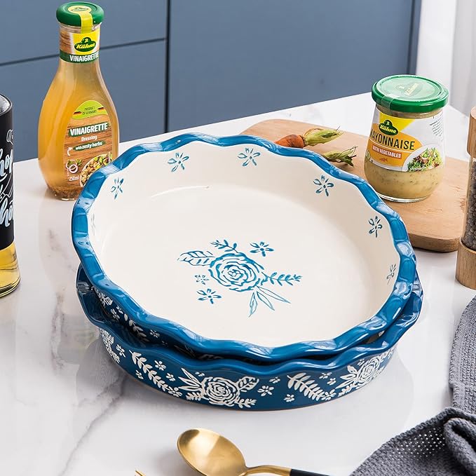 • 【CONVENIENT CLEANING】 Whether you want to clean the pie dish by hand or with your dishwasher, it won't matter because the smooth porcelain texture makes cleanup a breeze. and It is suitable for microwave, freezer and oven.