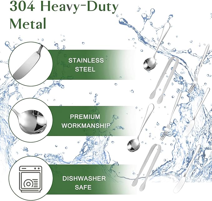 • Included Components : 4 stainless steel butter spreader knives, 4 stainless steel spoons, 4 stainless steel forks, 2 stainless steel mini tongs, 4 wooden honey dippers 4 stainless steel butter spreader knives, 4 stainless steel spoons, 4 stainless steel forks, 2 stainless steel mini tongs, 4 wooden honey dippers