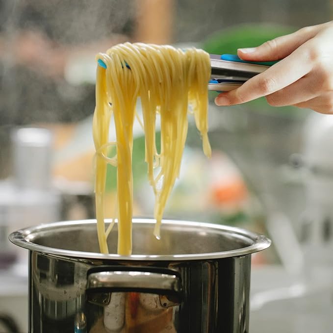 • ★【QUALITY】kitchen tongs are constructed with high quality stainless steel, sturdy, heat resistance, anti-rust, anti-corrosion, light weight, easy to handle, like new forever. This tongs Whether you use them for salad tongs, grilling tongs, or need trusty metal tongs for grabbing foods from boiling water