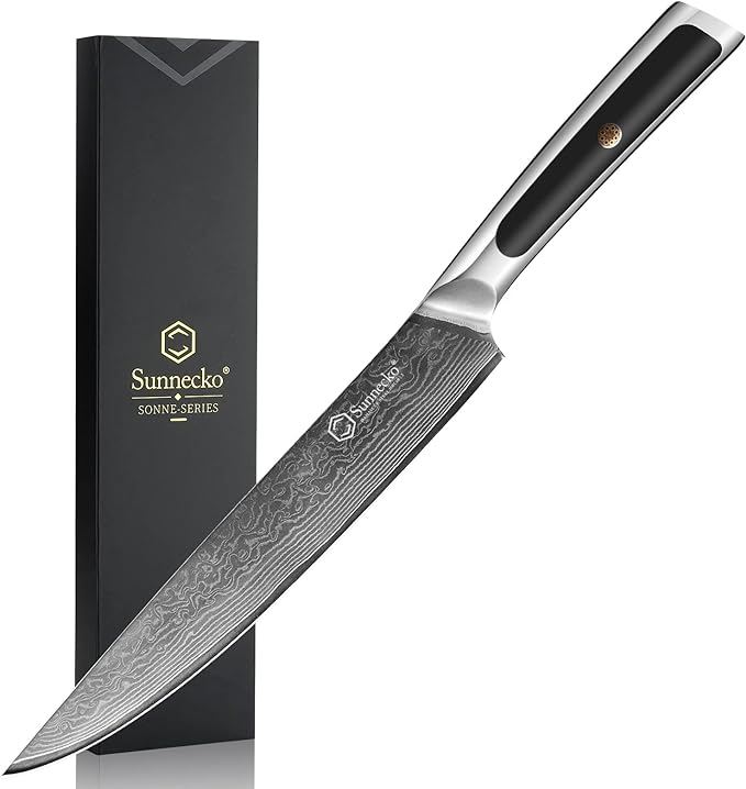 Sunnecko Damascus Kitchen Knife 8 Inch Carving Knife for Meat Slicing Knife Japanese VG10 Steel,Full Tang