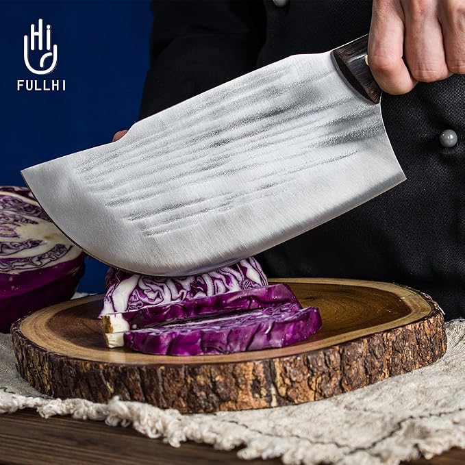• Wooden handle: The ergonomic full tang handle prevents the blade from being held comfortably and has a non-slip effect. The kitchen cleaver is a beautiful sight, impeccably expressing this powerful design, with good strength and durability.
