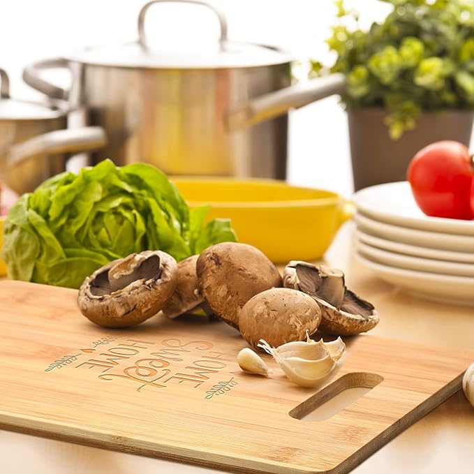 • Quality Cutting Board: these kitchen cutting boards are made of bamboo material, safe and reliable, sturdy and strong, has an excellent performance of durability, will not easy to warp, split or break, which are ideal for cutting vegetables, bread, meat, cheese or other foods