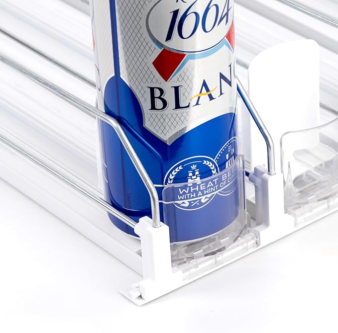 • Design Advantages: The soda can organizer keeps your drinks organized and accessible in the fridge, pantry, or cooler. Spring-loaded pusher smoothly glides beverages forward for easy access