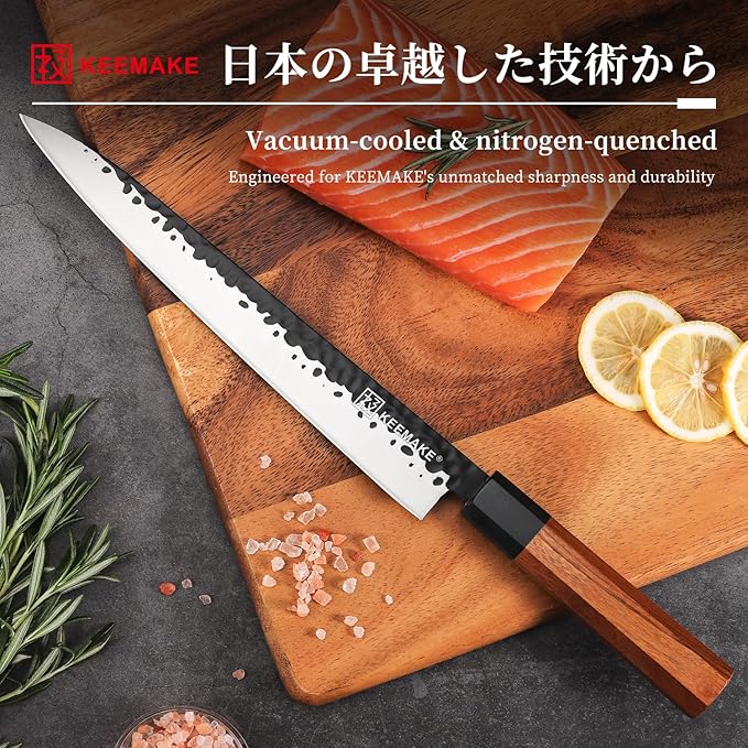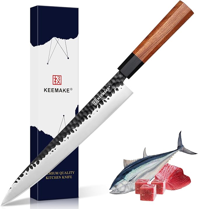 KEEMMAKE Sushi Knife - 10 inch Yanagiba with 440C Stainless Steel Blade, Japanese Sashimi Knife with G10 Bolster and Octagonal Rosewood Handle, Gift Box Included