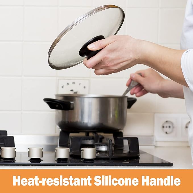 • 【Heat-resistant Silicone Handle】: The pot lid has a heat-resistant silicone knob that provides a safe and stable grip to grab. And as the knob is cool to touch when cooking, you can easily move around the lid without waiting for a long time.