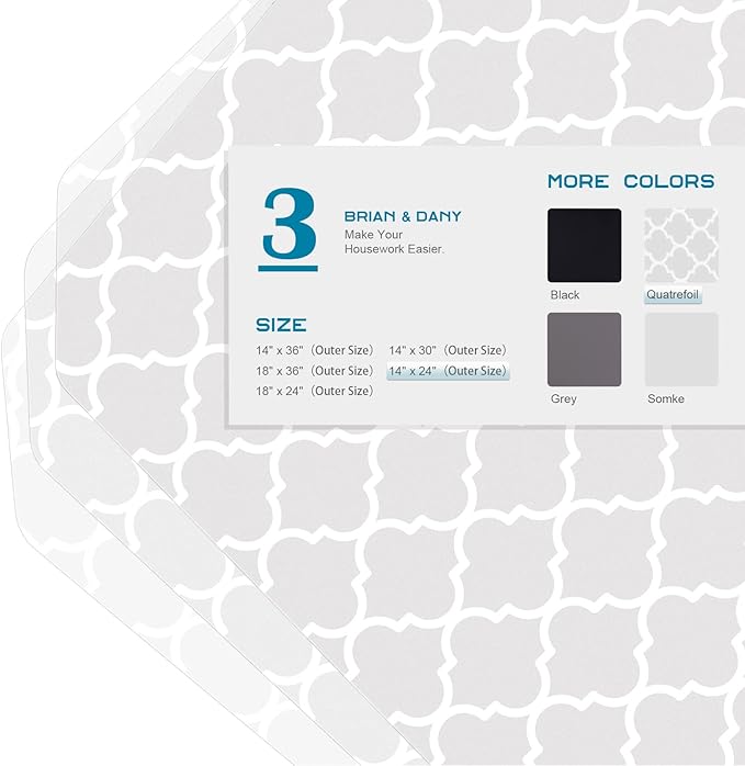 BRIAN & DANY Wire Shelf Liner 14" X 24", Heavy Duty Shelf Liners for Wire Shelving, Waterproof Protector Mats, Set of 3, Quatrefoil Grey