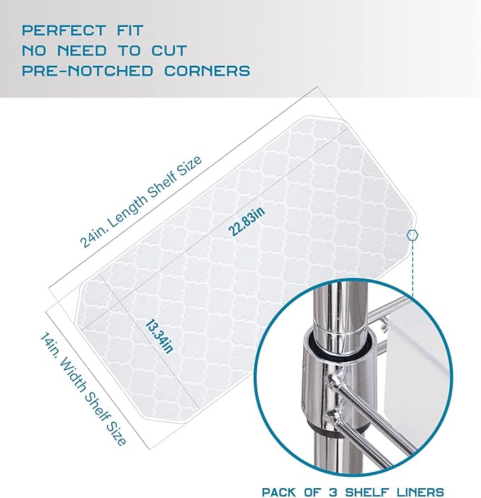 • 【Value Pack】Set of 3 shelf liners (13.34" x 22.83"), fits most brands of 14" x 24" wire shelf. The 4 corners with custom cutouts perfect fit with standard wire shelving system.