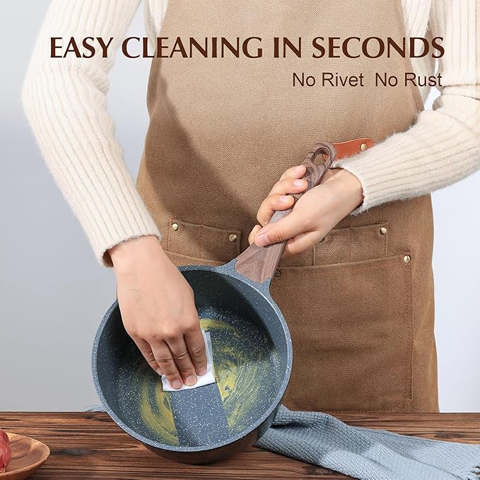 • Easy To Clean - Nonstick and no rivets, this sauce pot set of 2 is super easy to clean. Simply wipe it over with a sponge and warm soapy water. Make your daily food intake easier to make.
