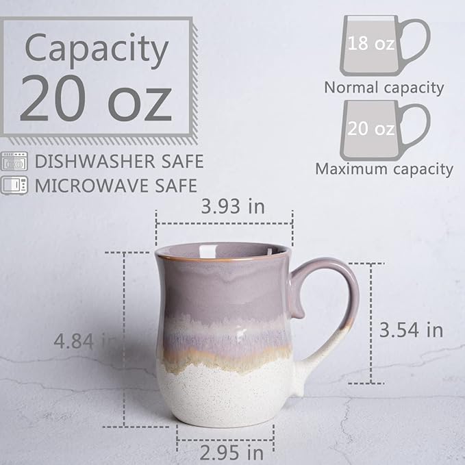 • NOTICE: This is a reactive glaze mug and every one is different. This mug has a large capacity(20 oz), which will definitely meet your needs for office and home.