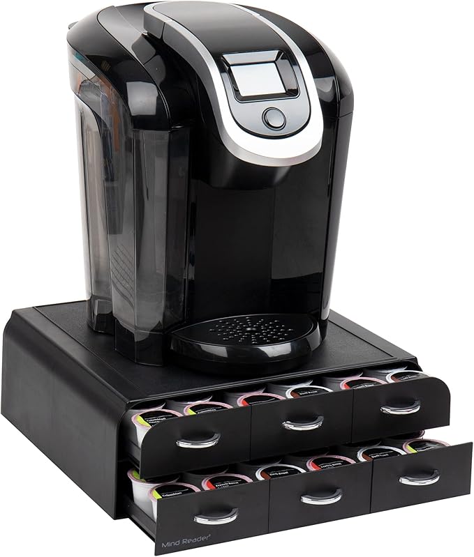 Mind Reader Single Serve Coffee Pod Organizer with 2 Drawers, 72 Pod Capacity, Countertop, 14"L x 12.25"W x 4.75"H, Black