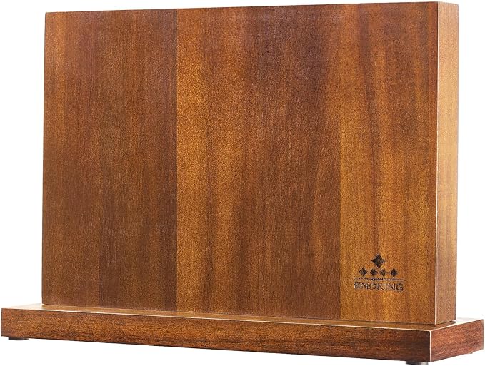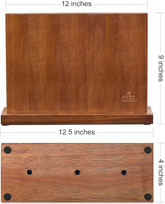 ENOKING Magnetic Knife Block 12.5 x 9 Inches, Double Side Magnetic Knife Holder Built in Three Powerful Magnets Strip, Acacia Wood Universal Knife Storage Organizer for Kitchen Counter