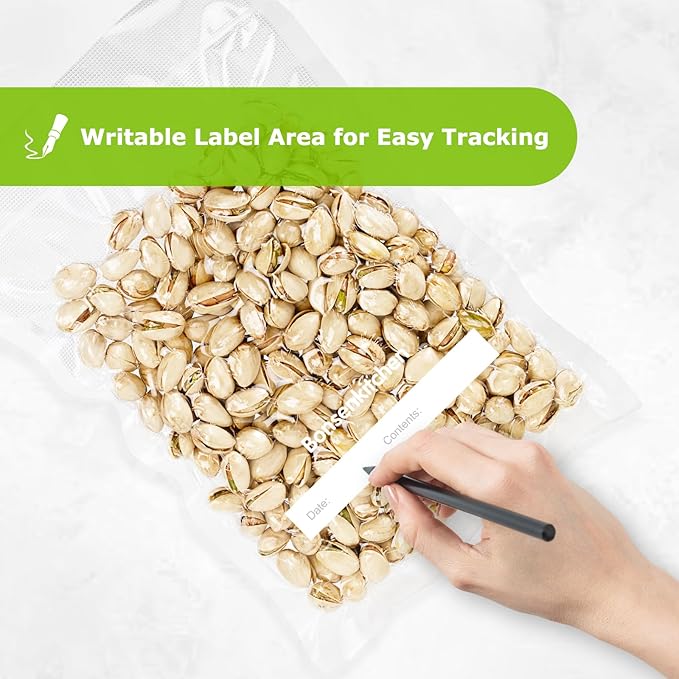 • 【UNIVERSAL SIZE FOOD SEALER BAGS】Bonsenkitchen pre-cut vacuum sealer bags 8 x 12 quart food vac bags are compatible with all major brand vacuum sealers including food, Seal-a-Meal and other brand name food sealer bags