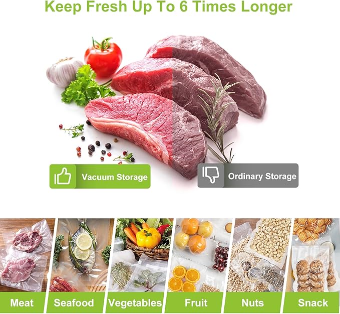 • 【CUSTOMISED-SIZE FOOD VACUUM BAGS】 Bonsenkitchen vacuum sealer roll is compatible with all major brand vacuum sealers, you can make a customized-size vacuum bag in a few seconds.