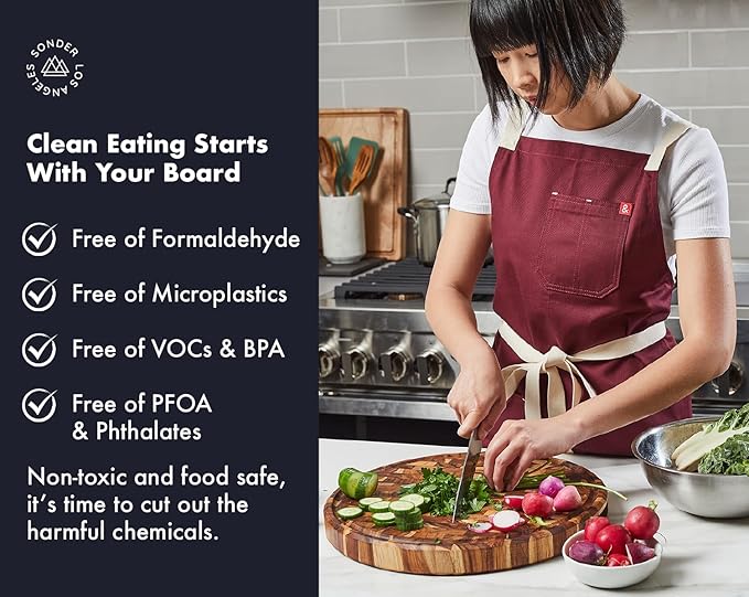 Sonder LA, End Grain Teak Wood Cutting Board 15" Round 1.5" Thick with Juice Groove and Built-in Handles, Charcuterie Serving Board (Gift Box Included)