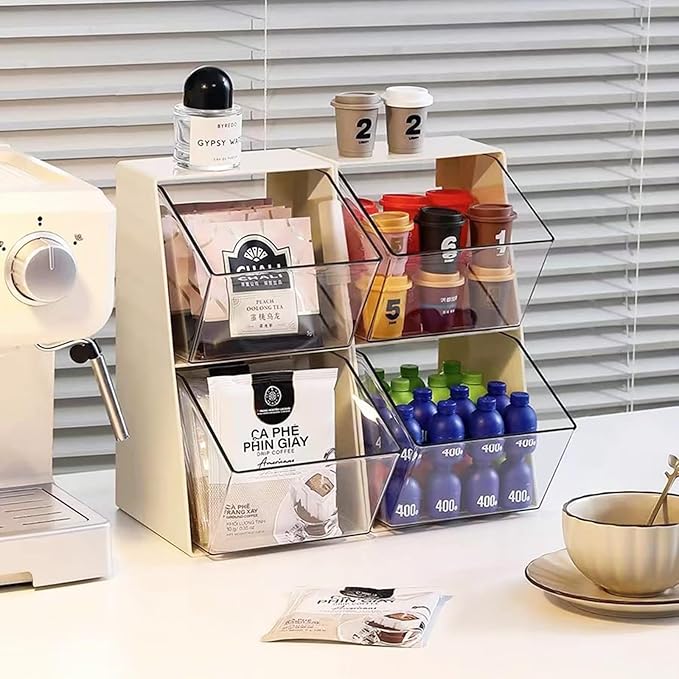 • 【Transparent Drawers for Easy Access】: Clear acrylic construction lets you instantly spot tea bags, coffee pods, or snacks—no more rummaging through cluttered containers. Open drawer design makes grabbing items effortless