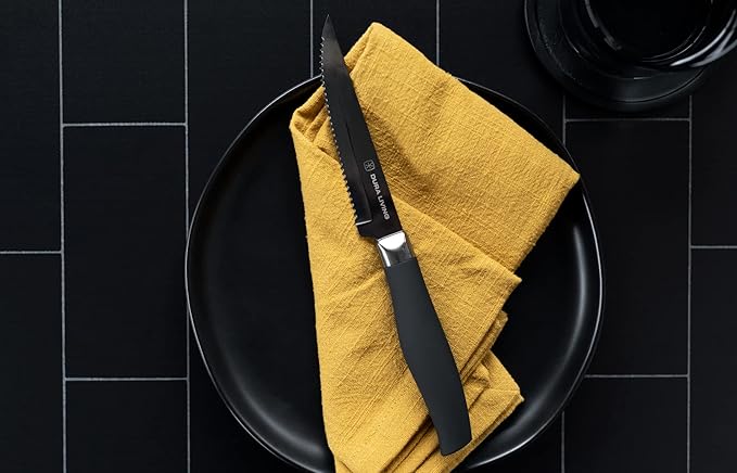 • Modern Black Design: Sleek, black finish complements any kitchen decor, making these knives as stylish as they are functional.