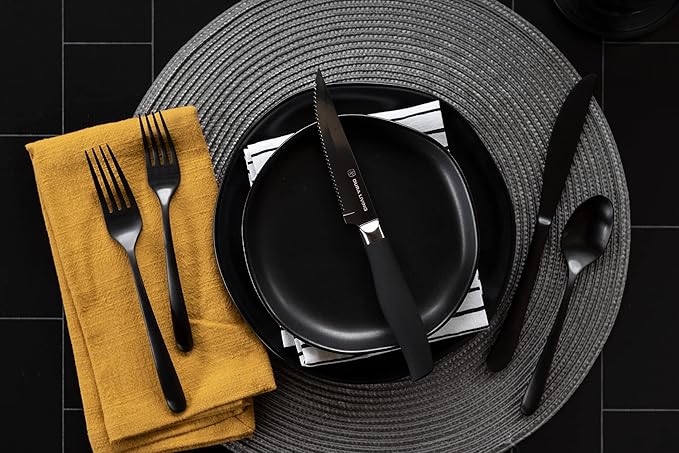 • Precision Serrated Blades: Each steak knife features a razor-sharp, nonstick serrated edge for effortless cutting through meat, ensuring restaurant-quality performance at home.