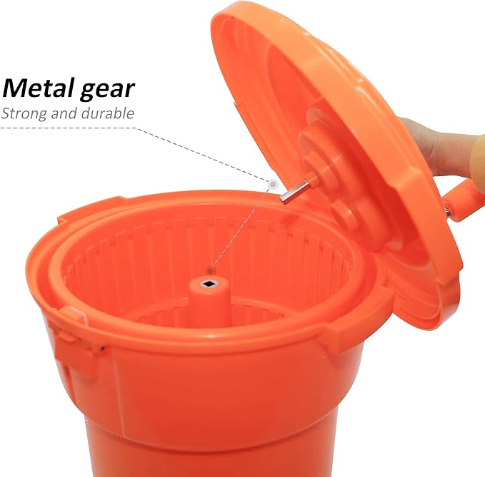 • 【Patent Design】Lettuce spinner,304 Bearing of Shafts,strong and durable.Have brake device,the brake stops the running bucket Safely,Innovative brakes effectively improve the service life of gear.