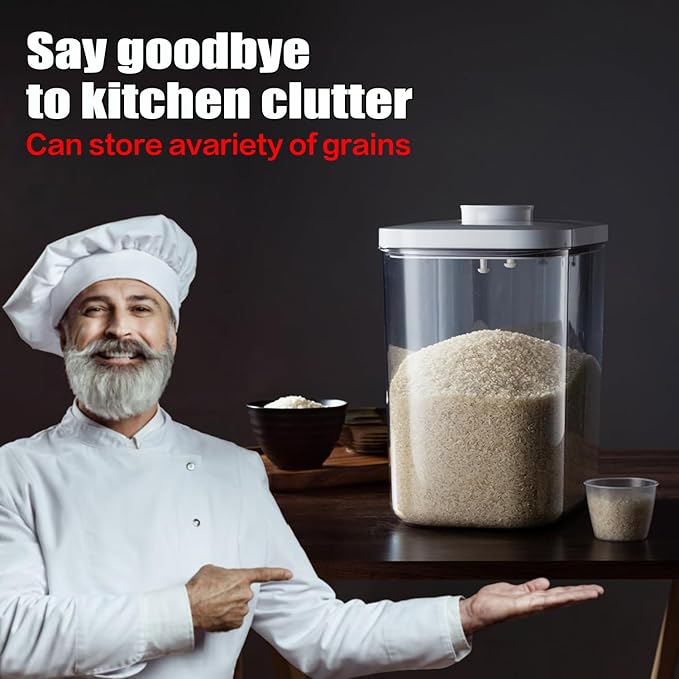 Rice Container - 25 Lbs/12KG/12L Rice Dispenser Storage with Measuring Cup Food Cereal Container Bins Pet Food Container Household for Kitchen Pantry Organization,White