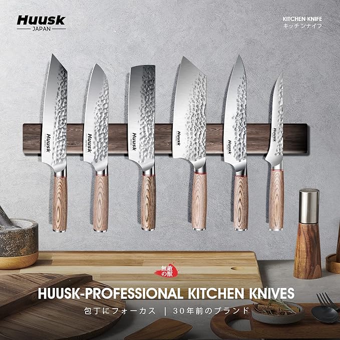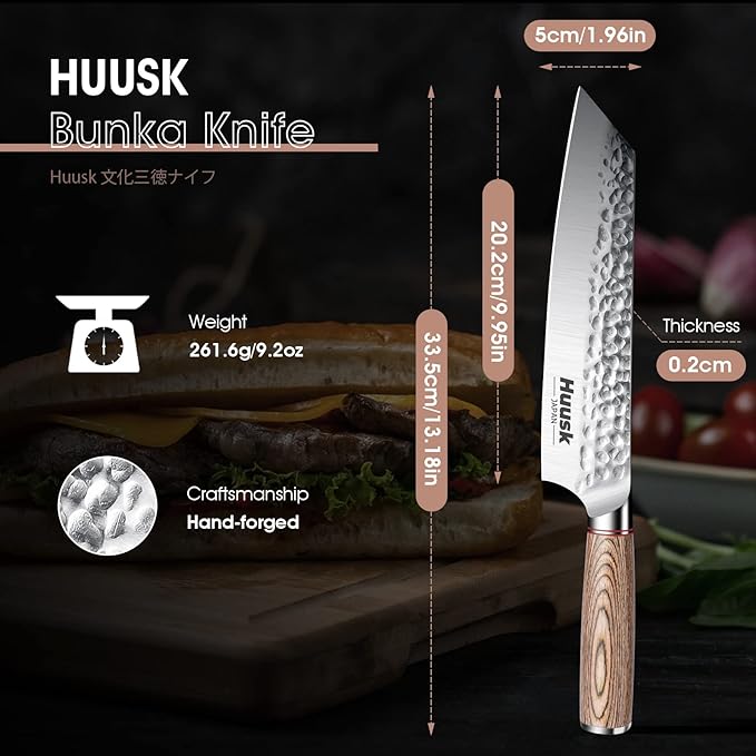 Huusk 8 Inch Kiritsuke Chef Knife Professional, High Carbon Steel Japanese Hand Forged Sushi Fish Knife, Ergonomic Pakkawood Handle - Father's Day for Men Women