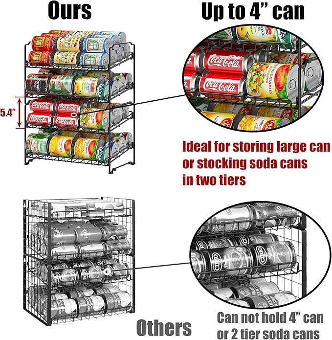 • Store up to 48 cans or variety size can/jars. High distance between layers can storage items diameter up to 4".