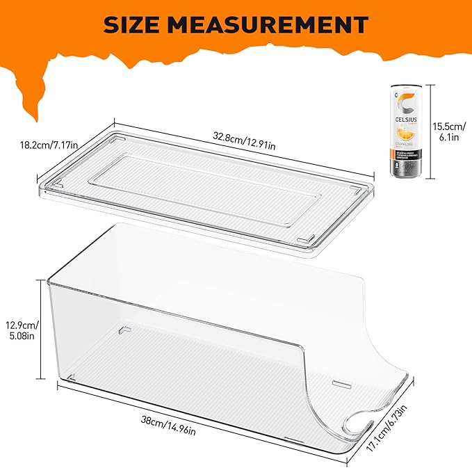• Stackable & Space-Saving: Stackable bins with a sealed airtight lid keep cans fresh, protected from dust and odors, and prevent spills. The lid top also doubles as extra storage, maximizing refrigerator space