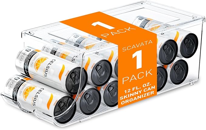 • Tall Skinny Can Organizer: Keep your cans neatly organized. Measured 15.50” x 6.87” x 5.08” and each soda can dispenser rack holds up 12 skinny cans (12oz / 330ml) or 9 pack 16oz soda cans