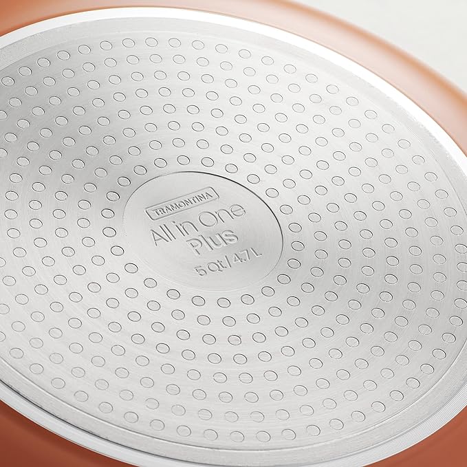 Tramontina All-in-One Plus Pan Set, 5-Quart Ceramic Non Stick Cooking Pan with Lid, Steamer Insert, Bamboo Utensil and Trivet, Orange