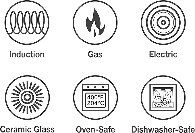 • Universal Compatibility & Oven-Safe: Works on all stovetops (induction, gas, electric, ceramic) and is oven-safe up to 450°F/232°C.