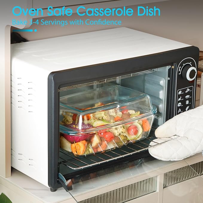 • 【Keep Moisture when baking】With the 360 degree clarity glass lid, you can see your food cooking and control process. Moreover, due to the small baking pan lid, don’t worry about baking burned and dried. It can lock in the nutrition and the flavoring perfectly.