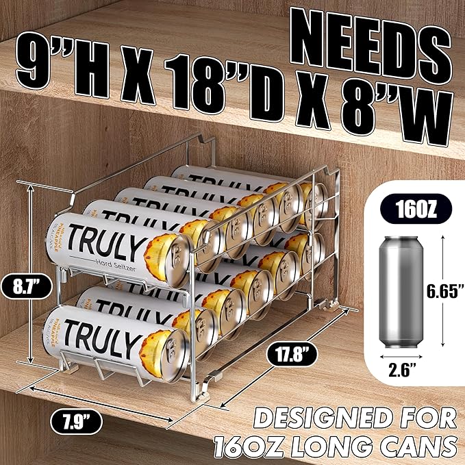 • Beverage Can Dispenser Rack holds 12 Tall Skinny size 16 oz soda cans and small size food cans